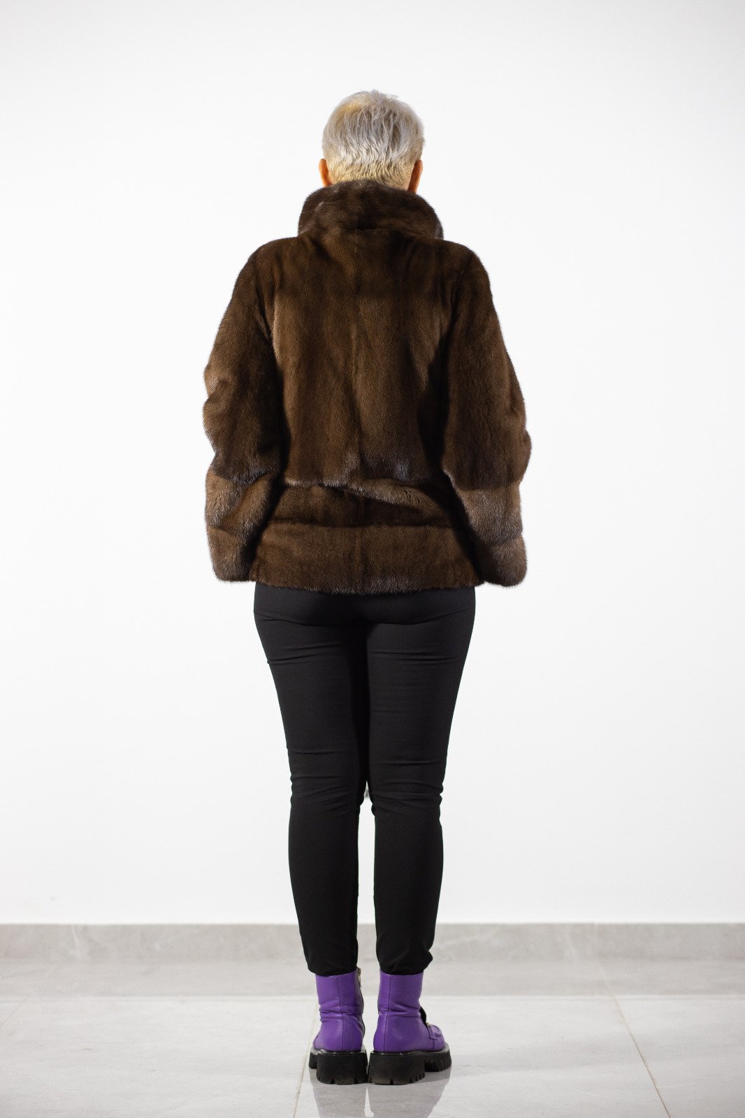 Jachetă maro din vizon, eleganță naturală și căldură premium.