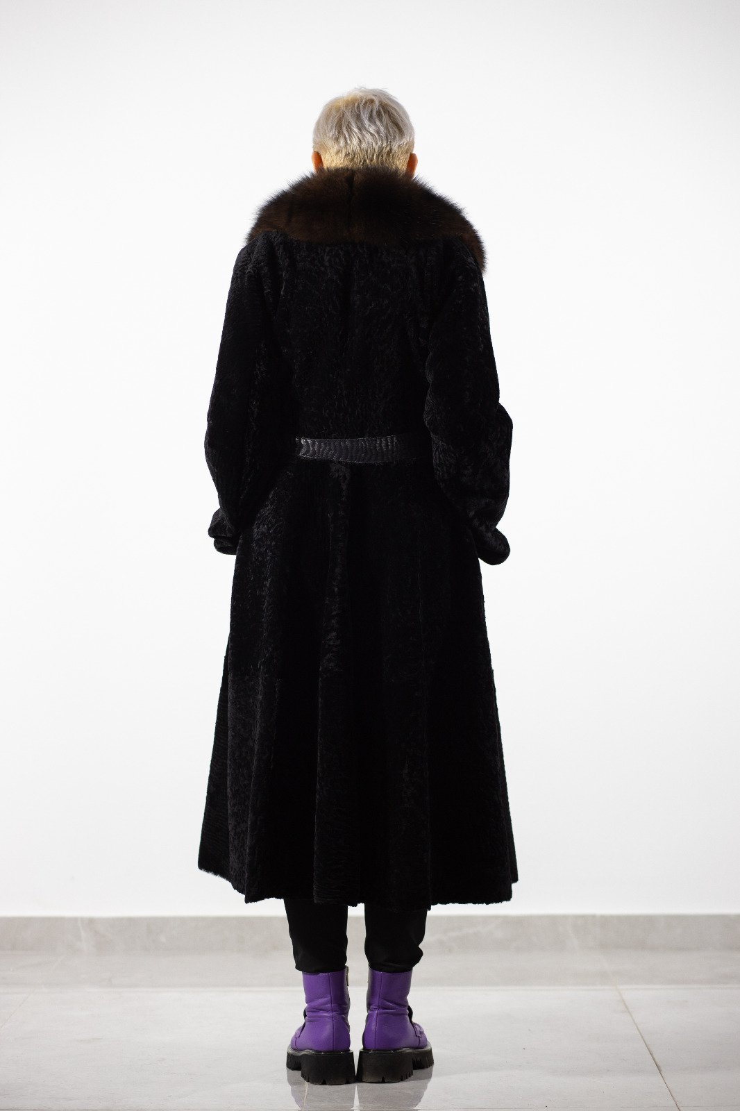 Palton lung din blană naturală cu guler generos, eleganță și căldură premium.