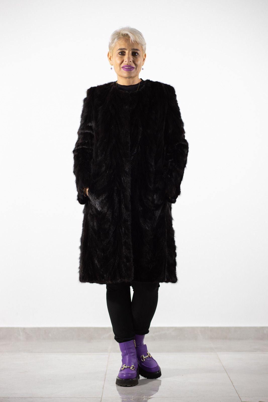 Împodobește-ți garderoba cu un palton lung din blană naturală neagră, un simbol al eleganței rafinate. Realizat din blană de cea mai înaltă calitate, acest palton îți va oferi nu doar protecție împotriva frigului, dar și un look sofisticat, perfect pentru serile speciale sau pentru o apariție de neuitat în orice moment al zilei. Confortul și stilul se întâlnesc într-o piesă de îmbrăcăminte ce emana lux autentic.