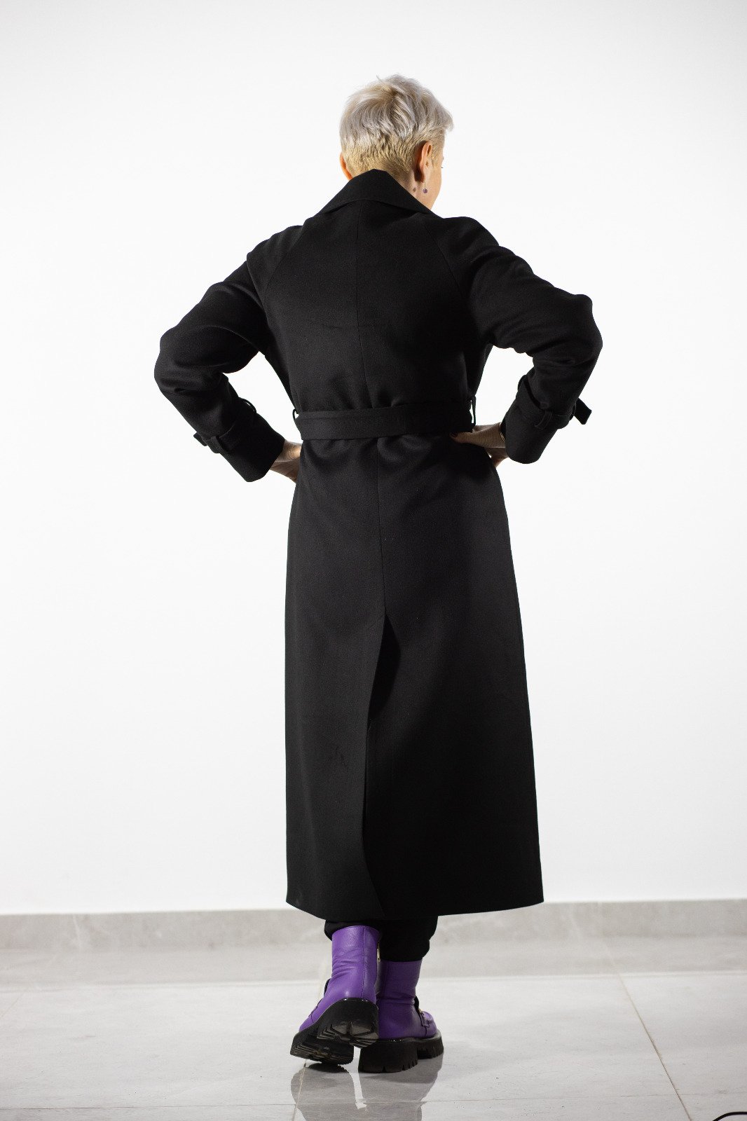Un palton negru lung, cu o croială impecabilă și curea în talie, care adaugă un plus de rafinament garderobei tale. Designul său versatil îl face ideal atât pentru ținutele business, cât și pentru cele de seară.